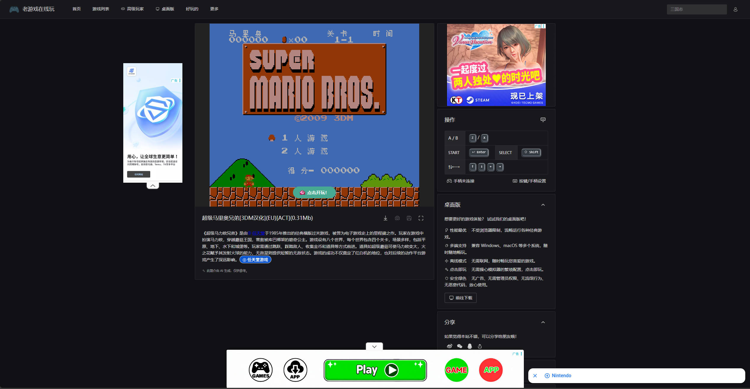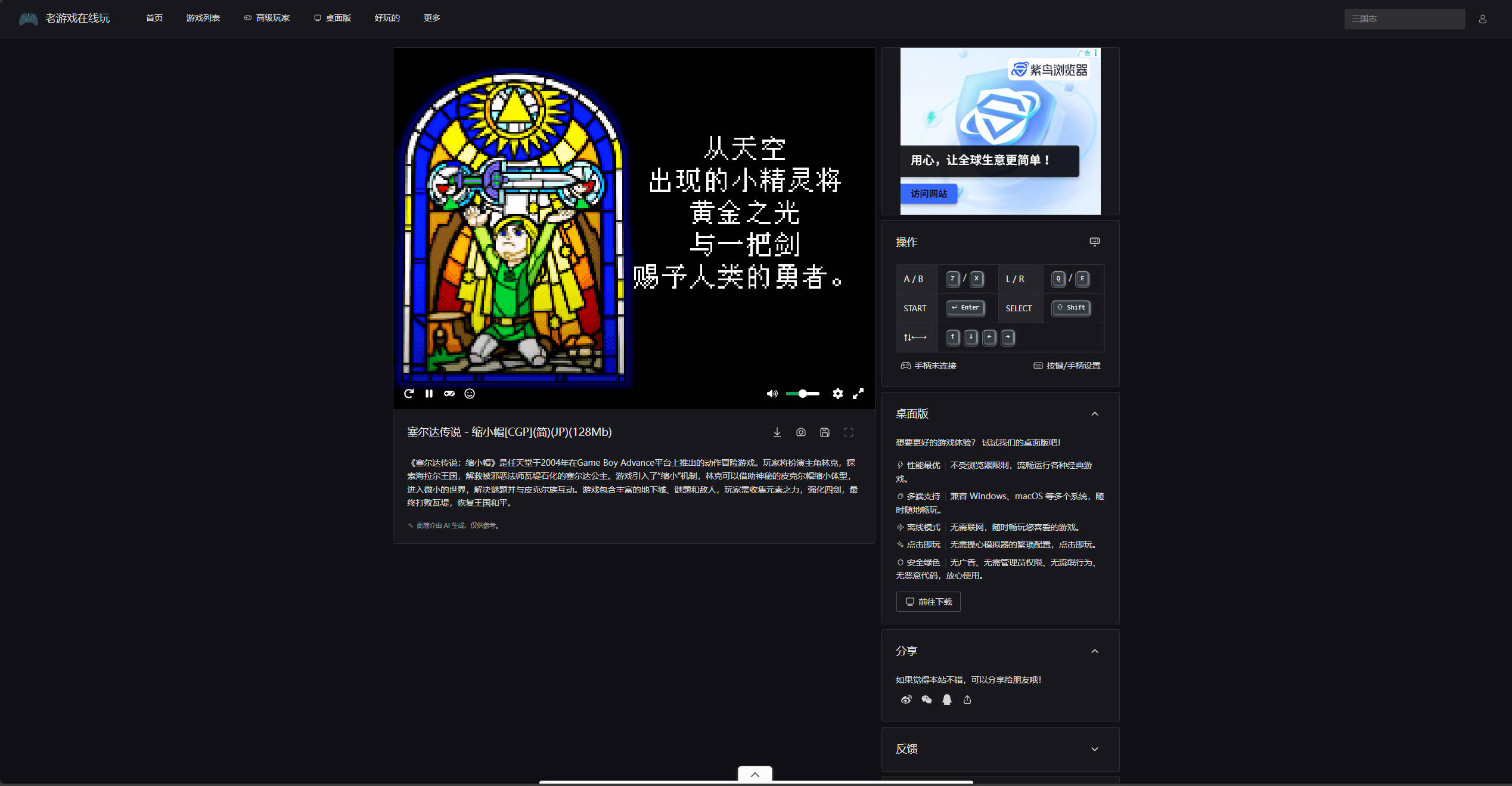 在电脑和手机浏览器里畅玩 30000+ 中文老游戏,支持触屏、手柄、键盘、存档!包括 FC, SFC, N64, GB, GBC, GBA, NDS, PS, SS 等多种游戏机平台。