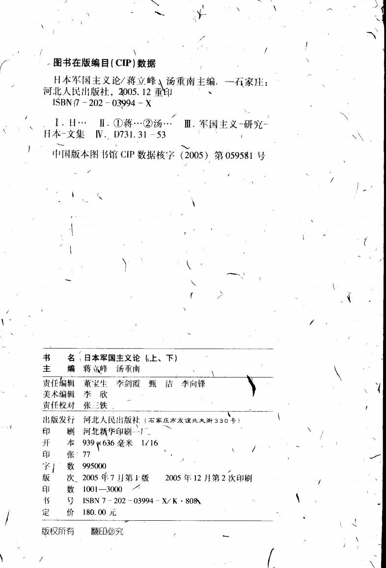 1945年日本战败投降,日本军国主义的内外政策彻底破产。日本军国主义给邻国人民带来了深重的灾难,为向邻国人民表示反省的诚意,为警示日本今后的发展道路,日本理应对军国主义进行严肃、认真、深刻地研究和批判。日本战败投降已阅一甲子,但令人遗憾的是,在20世纪50至70年代,日本国内除少数进步学者提出了一些研究成果外,从总体上看对军国主义的研究与批判十分缺乏。近年在日本虽出版了极少量关于日本军国主义的研究著作,但多是欧美学者的译作。对日本学者而言,甚至已发展到连“军国主义”、“法西斯”、“侵略”一类词语的使用都成为禁区的地步,更不用说对军国主义、法西斯、侵略战争进行批判,是如何被视为大逆不道,要遭到右翼势力的无端攻击,其人身安全难有保障了。显而易见,今后仍难期待日本的军国主义问题专题研究得到突破性进展。