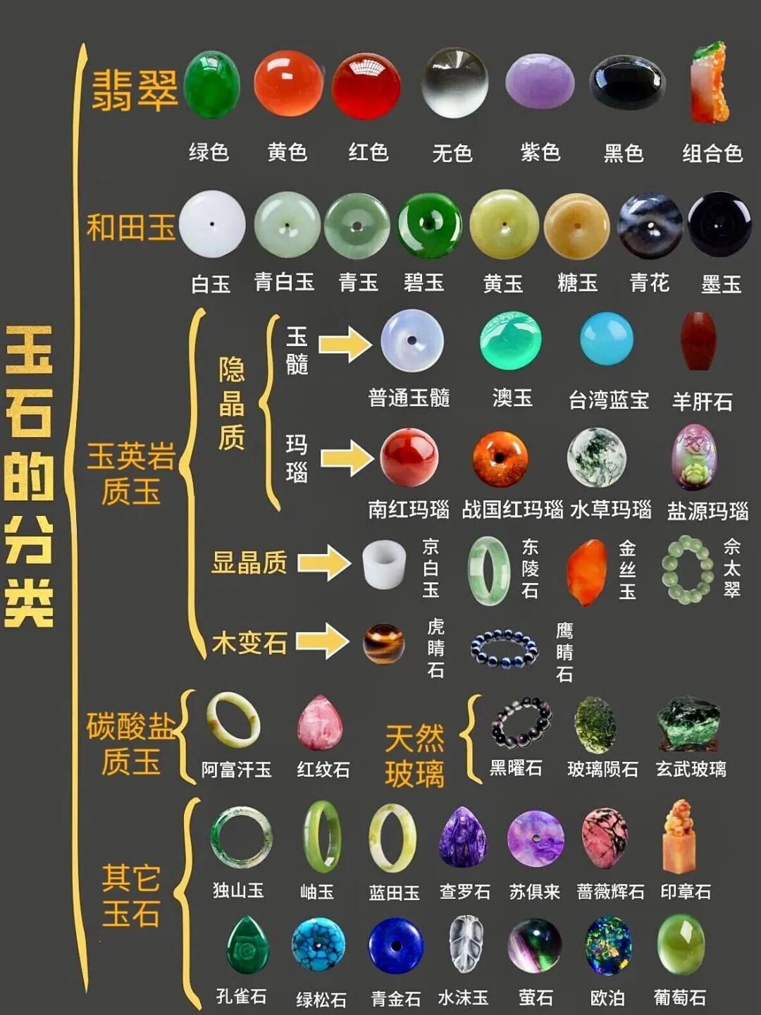常见的大玉石品种有:翡翠、和田玉、石英岩质玉、天然玻璃