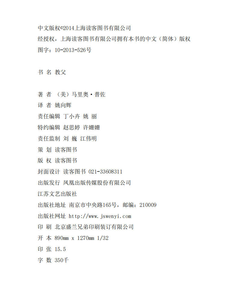 《教父》是美国作家马里奥·普佐创作的长篇小说,1969年首次出版。