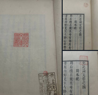 《史记论文》最早的版本就是康熙二十五年(1686)广州吴氏尺木堂刊本,中国国家图书馆藏有藏。将近100年以后,尺木堂重新刊刻《史记论文》,武汉大学图书馆藏有乾隆四十五年(1780)刻本。又过了将近半个世纪,《史记论文》漂洋过海,在日本的刊行。日本天游园以康熙二十五年广州尺木堂原刊本为底本翻刻《史记论文》。日本翻刻中国古籍,大多粗制滥造。但天游园的这部《史记论文》堪称精品。书的开本阔大,包装非常考究,封面的签条,用的是洒金纸,在光线之下熠熠生辉。每册的书签有两条,竖着的是书名《史记论文》和册数,横着的是本册内容的目录,这是沿用清初刻书的习惯。书的封皮,用的是厚实的专用皮纸,防水性和耐磨性非常好。书的内页,是上好的皮纸,纸色稍黄,柔软细致,正面光滑,背面略涩,与美浓纸相似。刻工则全仿康熙风格,保留着晚明刻书的韵味。其中,又以书前的吴兴祚《史记论文序》最佳,下刀均匀,瘦劲工致,每半页仅刻七行,每行仅刻十六字,开卷赏心悦目。即使是当时的中国刻工,也未必能刻出这样精美的方体大字来。一转眼,文政本《史记论文》问世也有182年了。近两个世纪以来,这部书保存得非常完好,期间经历了怎样的风风雨雨,又如何躲过一场又一场的战乱,重新回到它的作者吴见思的故乡,大概永远是个谜了。