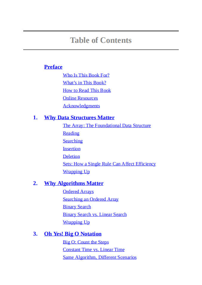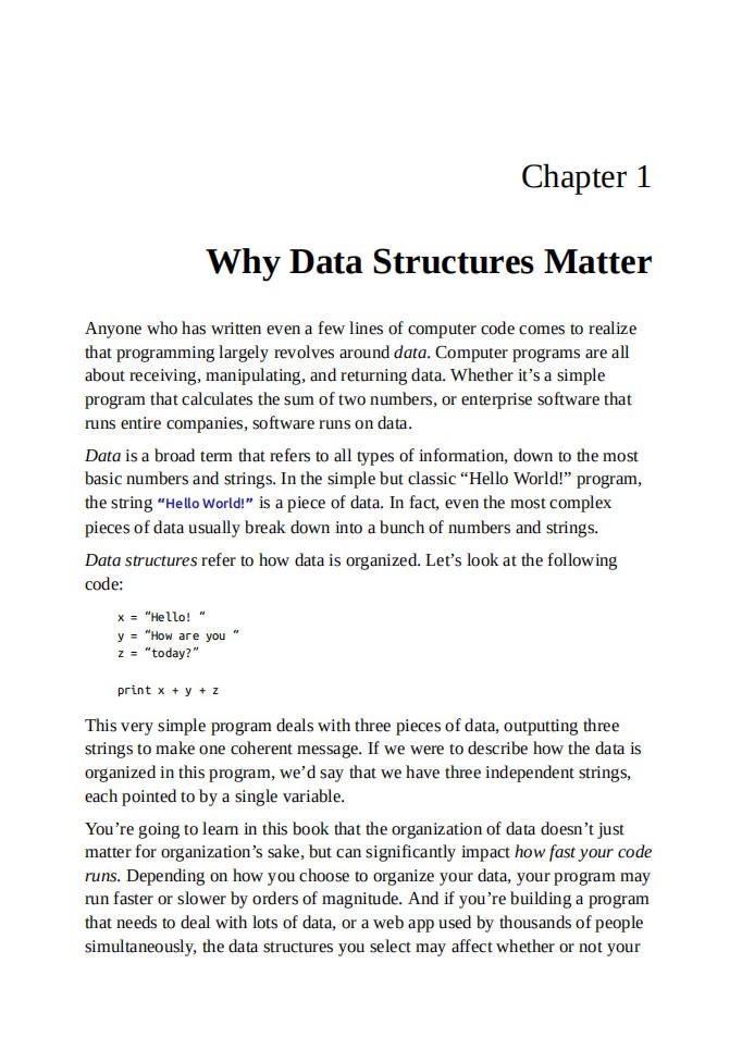 Data structures and algorithms are much more than abstract concepts. Mastering them enables you to write more efficient code that runs faster, which is particularly important for today’s web and mobile apps. If you last saw an algorithm in a university course or at a job interview, you’re missing out on the raw power algorithms can provide.