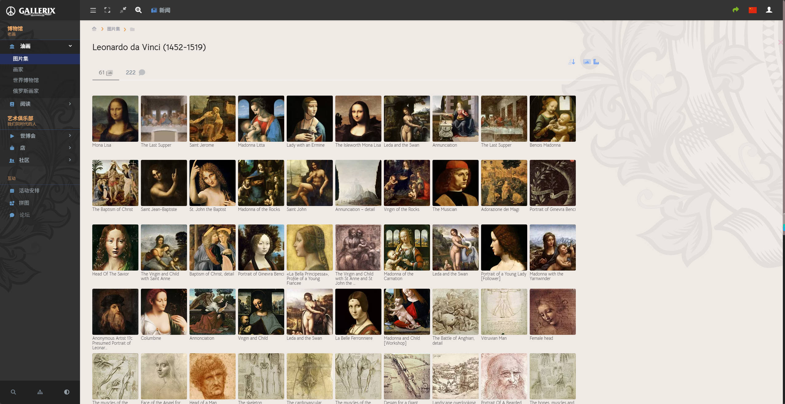 ★ RuNet最大和最受欢迎的关于绘画的专题网站。 超过4万名艺术家,从我们同时代的人到已经熟知的老主人。 来自私人收藏和世界上最好的博物馆的50多万幅画作。 巨型虚拟博物馆Gallerix全天开放,无需休息,入场免费,欢迎您光临!