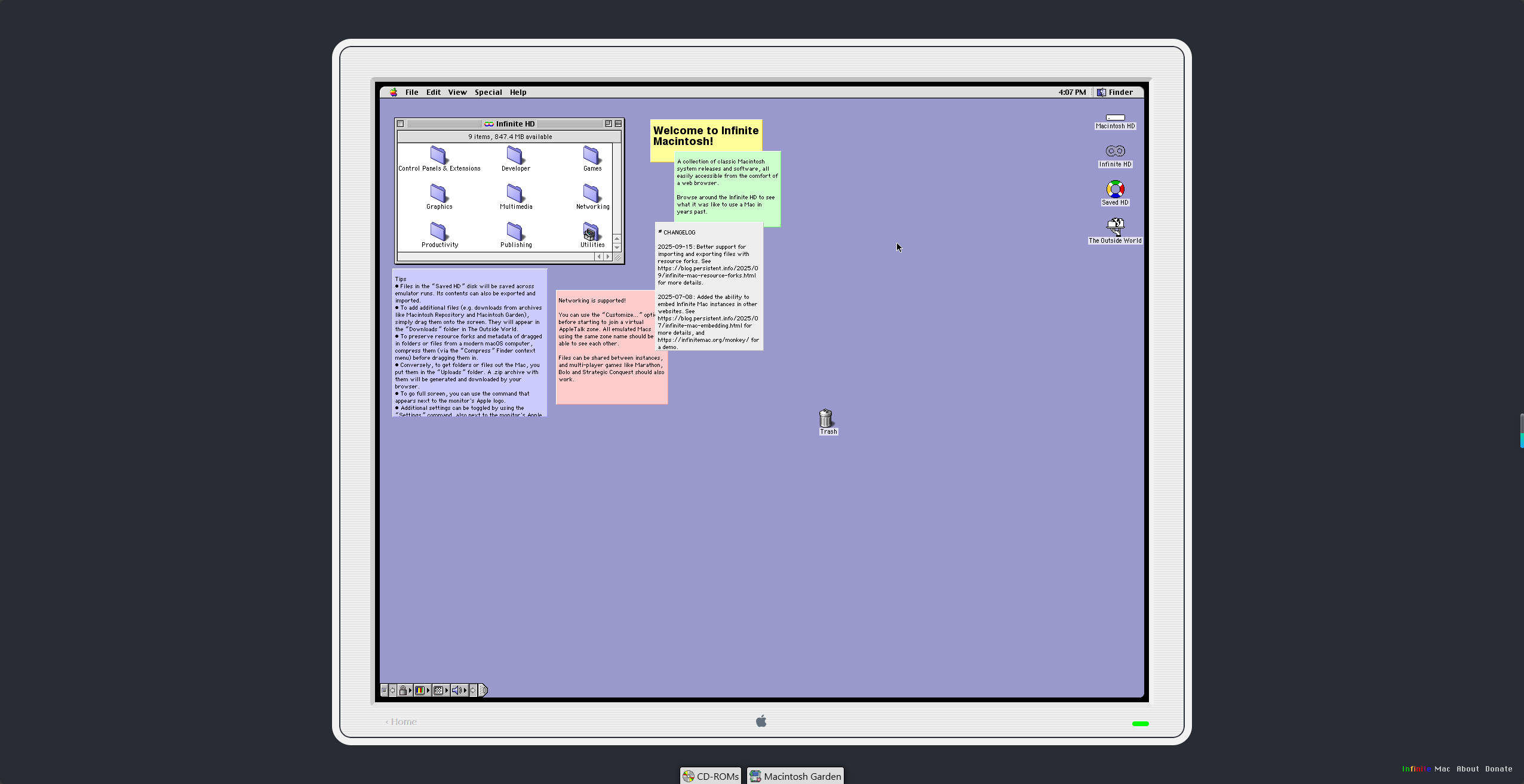 Infinite Mac is a collection of classic Macintosh and NeXT system releases and software, all easily accessible from the comfort of a web browser.