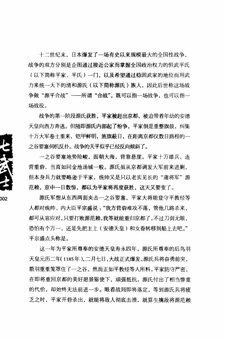 “武士”一词并不是日本人的发明,它来源于中国。对于中国秦汉以前的贵族社会来说,贵族以天子、诸侯、卿大夫、士的层级来划分,“士”本是指下级贵族,当然武士也就是武勇之“士”,是贵族阶层的一员。然而日本的武士最初却并非贵族,并且他们正是贵族社会的掘墓人。