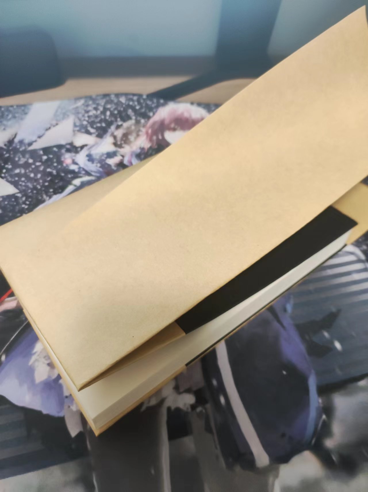 3. 直接折完然后套在书本上,可能对于把控不了精度的人来说有点困难,那么建议先折一个边,把书本装入后在慢慢调整另一个边。这样比较容易掌握。