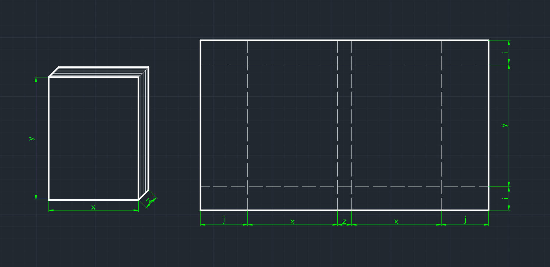x,y,z是书本的长宽厚。i,j是书皮预留的部分。虚线是折痕。