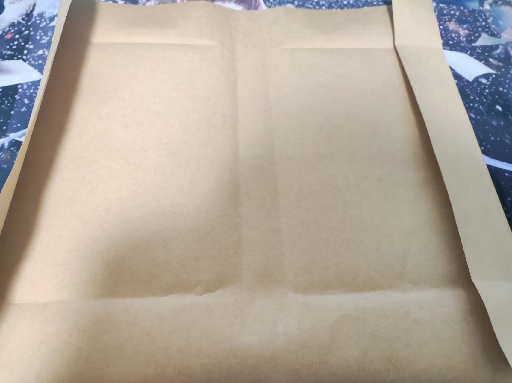 2)整齐对折,根据书本压出轮廓折线。