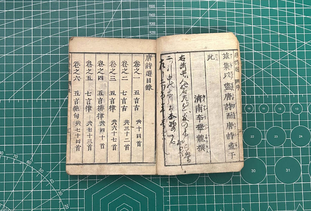 【收藏】No.116_唐诗选(全);这是一本和刻本(或手抄本),古籍,汉字,繁体,线装。一共三本七卷全。封面内页有很多字迹,毛笔铅笔等。时间有两处。拥有者签名至少三处。黑色的印章不知是什么符号。…