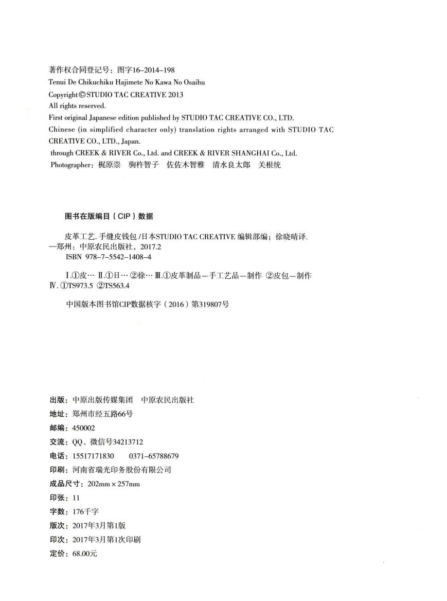 【书籍】皮革工艺 手缝皮钱包;看上去稍微有些复杂的皮钱包,可能会因为具有一定的制作难度而吓倒一些人。它需要专用工具以及技巧。然而,皮革并不需要像布料那样折双层加工,它本身就有一定的厚度,不加内衬也能使用。事实上,皮革是创作处理上较为简单的素材。本书汇集了一些不需要使用缝纫机和复杂处理技术的作品,即便…