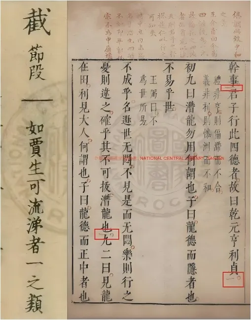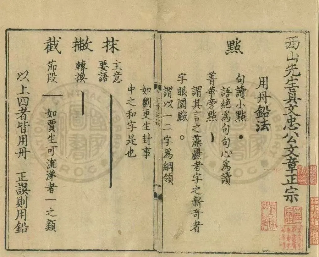 明嘉靖二十八年书林胡氏刻本唐顺之《唐会元精选批点唐宋名贤策论文粹》中“圈、点、抹、截”示例。