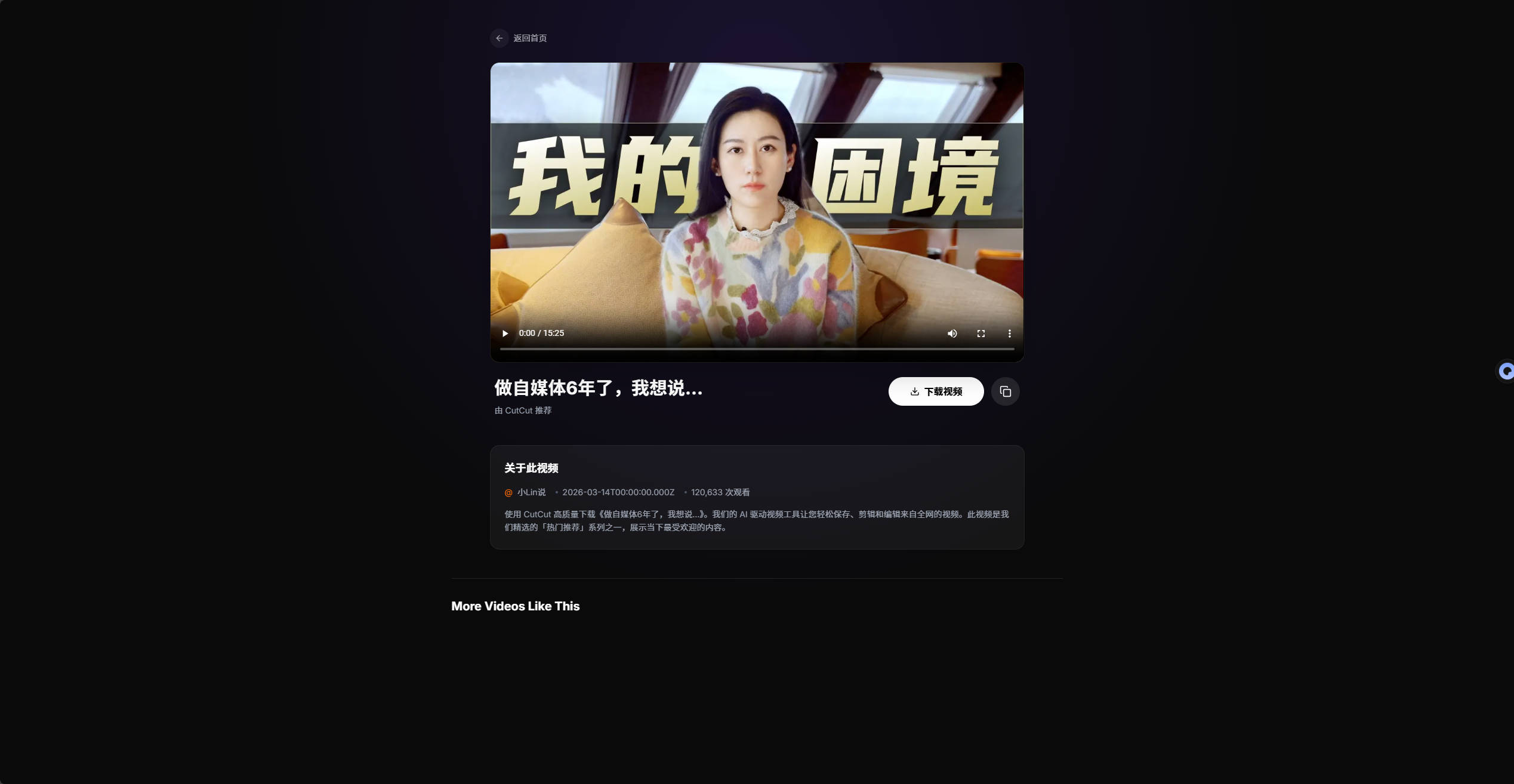 支持下载 YouTube、Twitter 等平台的 4K 高清视频。使用 CutCut 可以精准裁剪并保存你喜欢的片段。无需安装,即开即用。