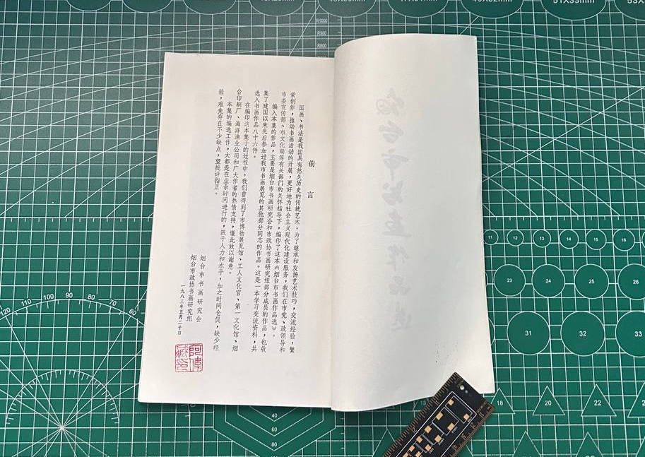 这是一本书画类书籍。内容是烟台市当地人的书画作品选。没有版权时间信息。