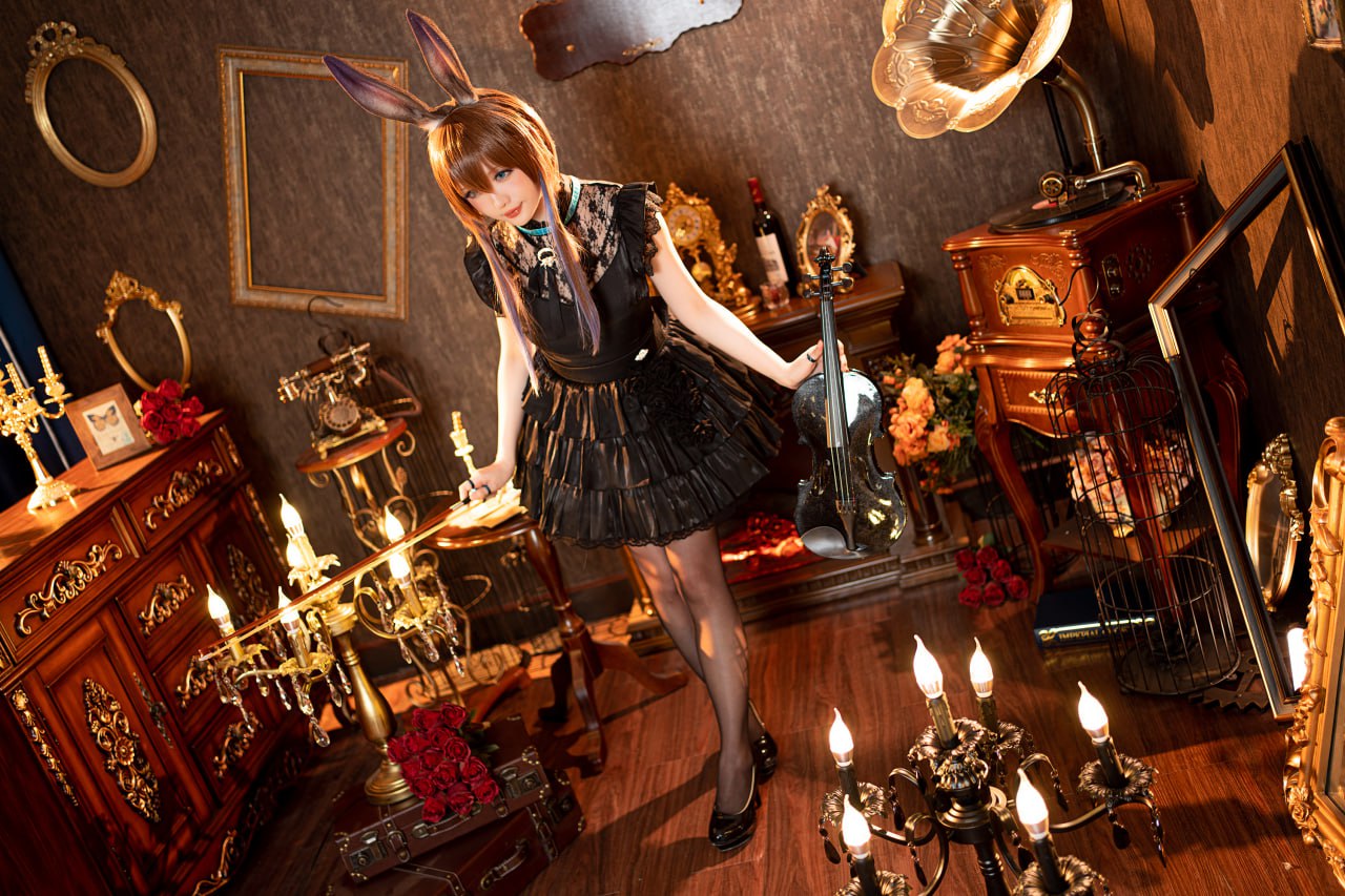 Cosplay;女孩子;长发;黑丝;兽耳;小提琴;