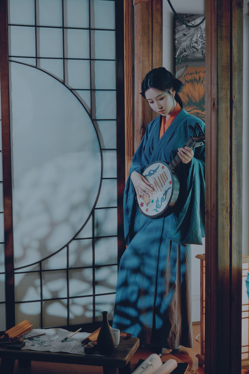Cosplay;女孩子;长发;青色;霓裳;琵琶