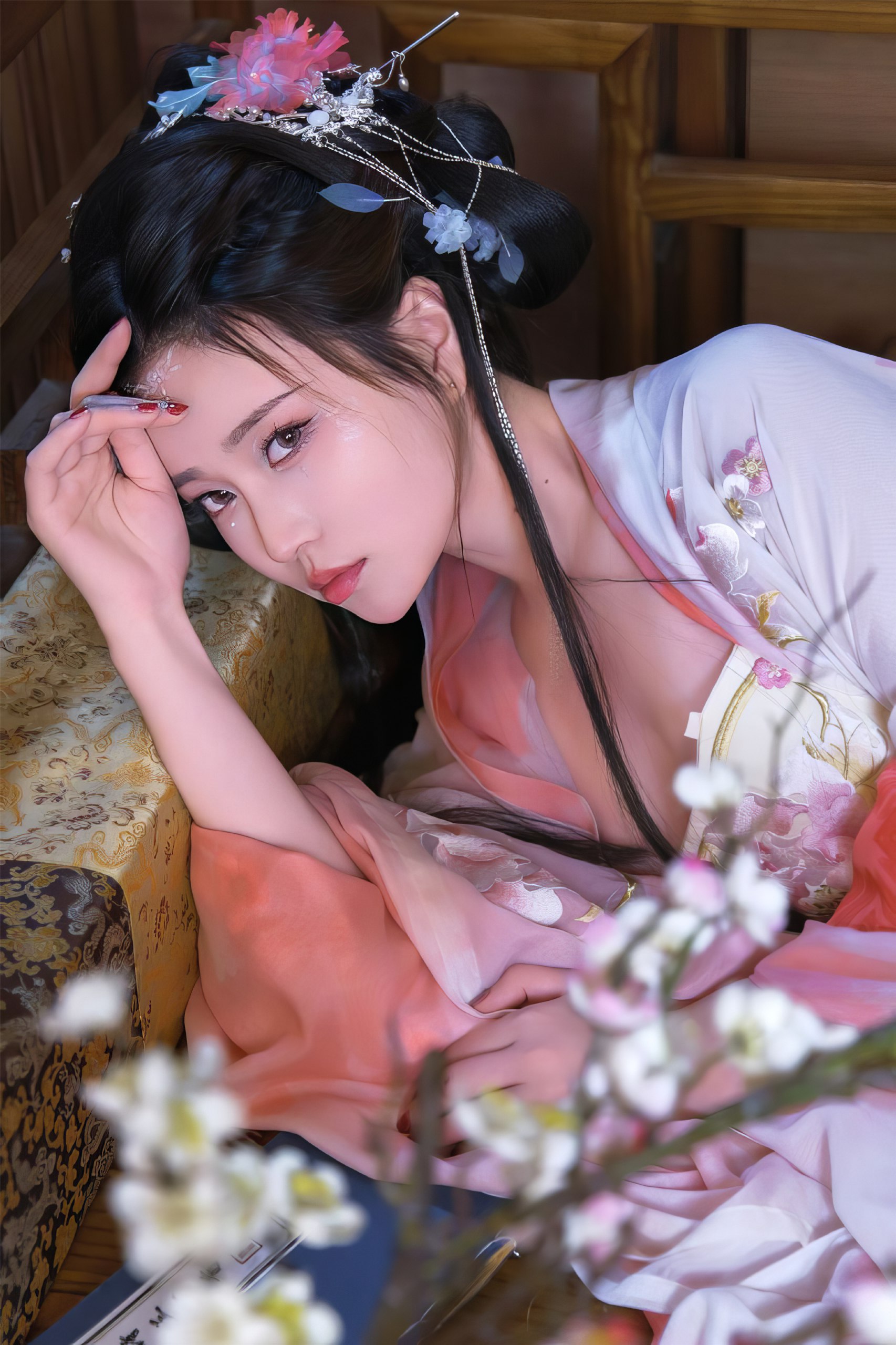 Cosplay;女孩子;长发;粉色;霓裳;花;