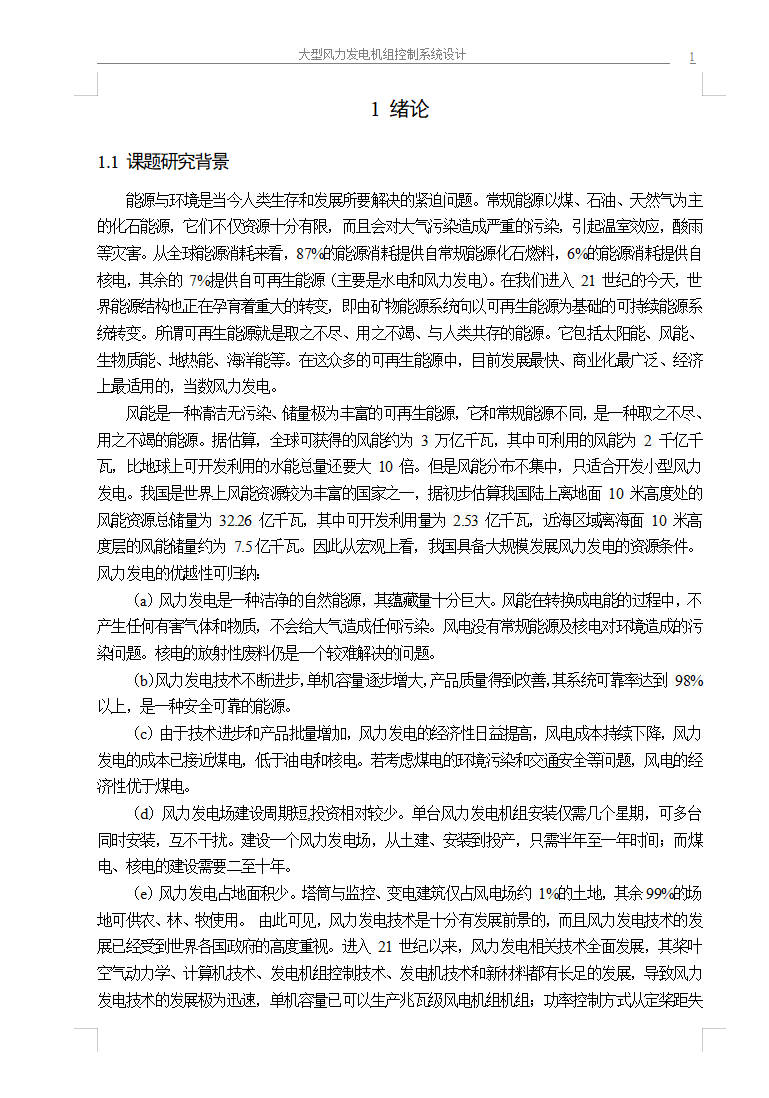 风能是一种清洁、可再生的能源,具有巨大的开发潜力和商业活力。风力发电机组是将风能转化为电能的主要设备,它是风力发电的重要组成部分。而控制系统又是重中之重,不仅要保证机组的正常运行,还要实现风能到电能的最大转换效率。