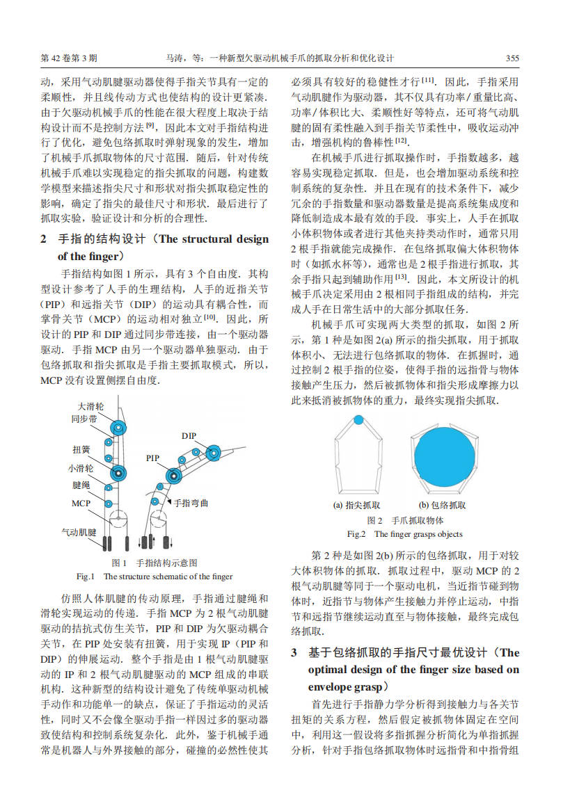 论文;欠驱动;包络抓取;指尖抓取;优化设计;机械手爪;