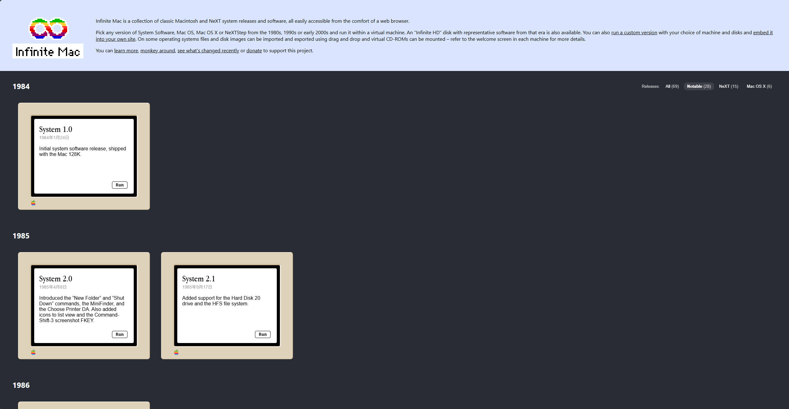 Infinite Mac is a collection of classic Macintosh and NeXT system releases and software, all easily accessible from the comfort of a web browser.