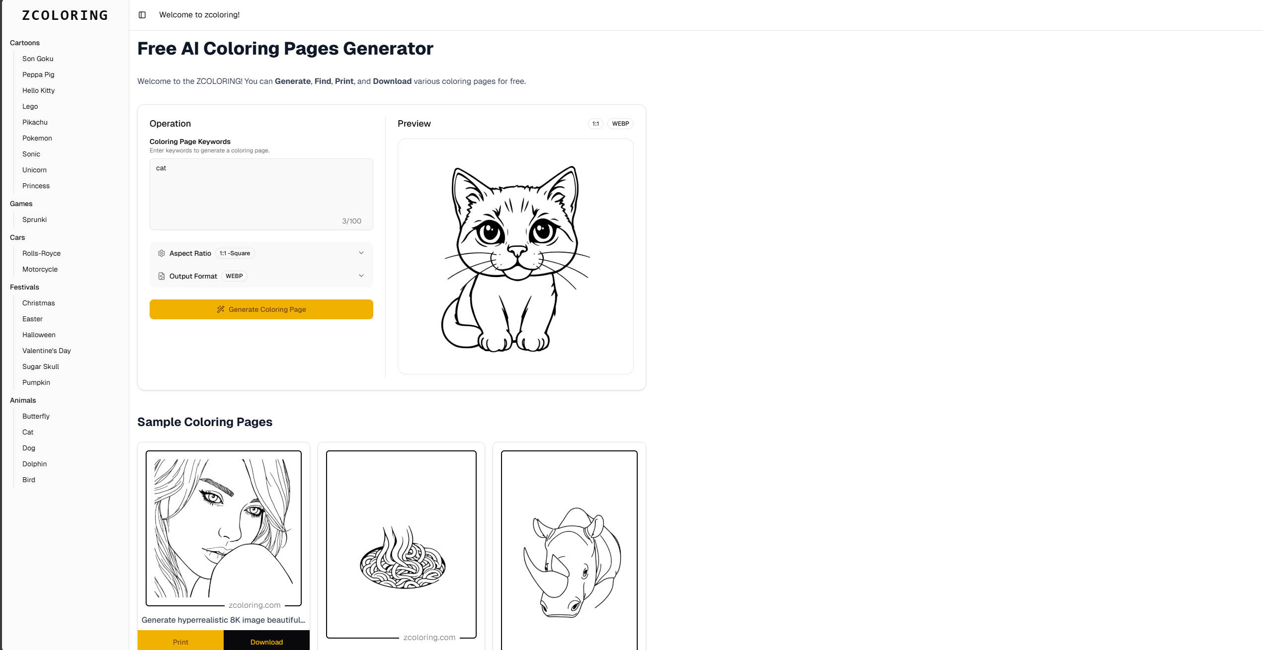 Welcome to the ZCOLORING! You can Generate, Find, Print, and Download various coloring pages for free.