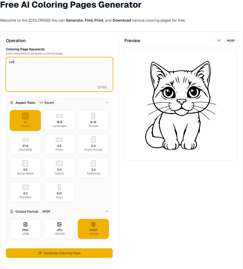 Free AI Coloring Pages Generator.