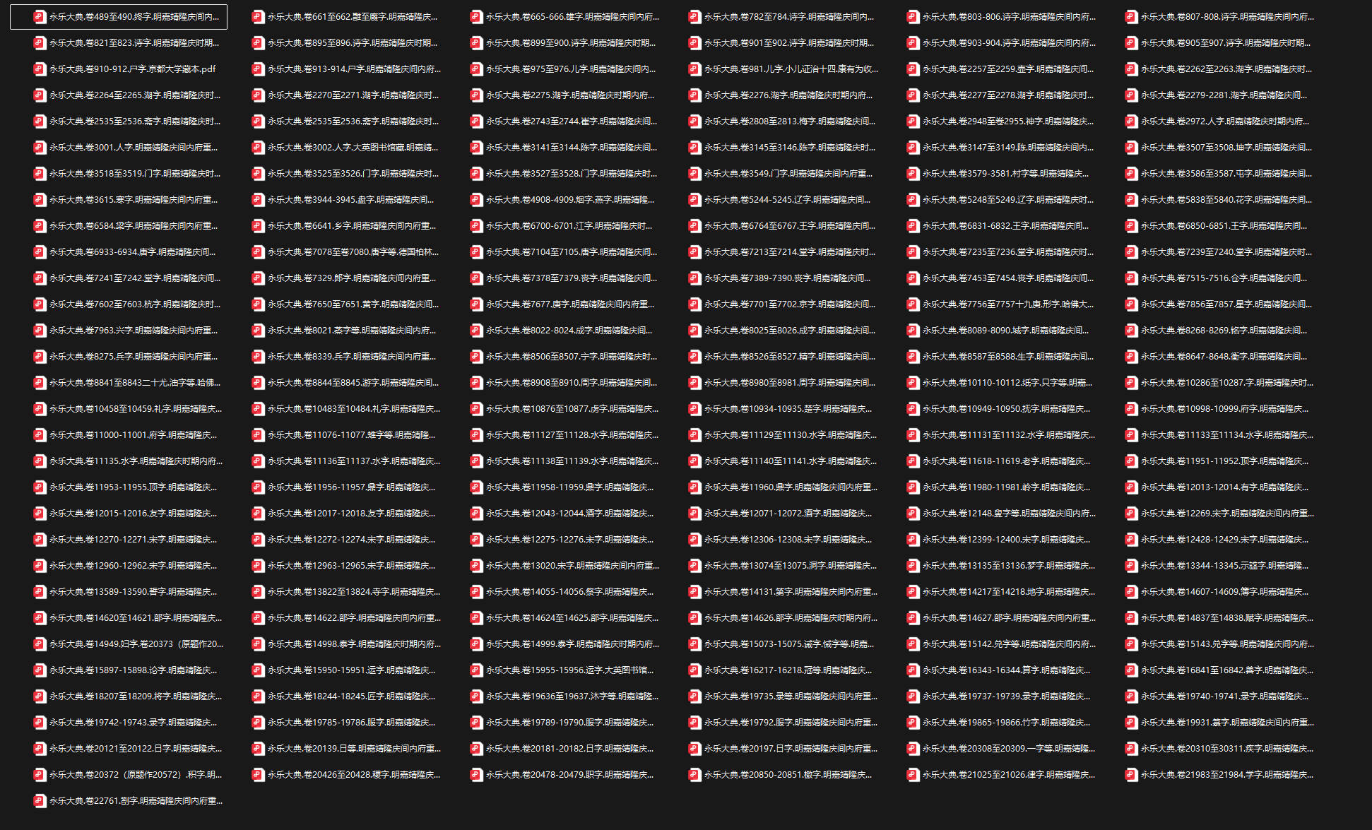 《永乐大典》正本杳无音讯,大典副本也惨遭浩劫,大多毁于火灾和战乱,也有相当一部分被后人以修书之名窃走,现今仅存800余卷且散落于世界。《永乐大典》内容包括经、史、子、集,涉及天文地理、阴阳医术、占卜、释藏道经、戏剧、工艺、农艺,涵盖了中华民族数千年来的知识财富。《不列颠百科全书》在“百科全书”条目中称中国明代类书《永乐大典》为“世界有史以来最大的百科全书”,已经成为了中国文化的一个重要符号。