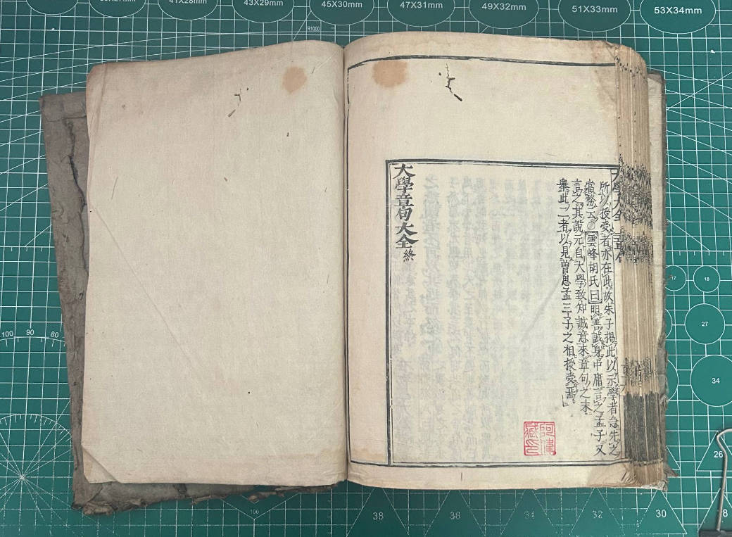 这是一本和刻本,古籍,宣纸线装。残卷。大学全。很可能是从中国流出的版本重新装订了一下。原书大概二十多本,这本书把大学部分装订在一起。内页有红色笔记批注。