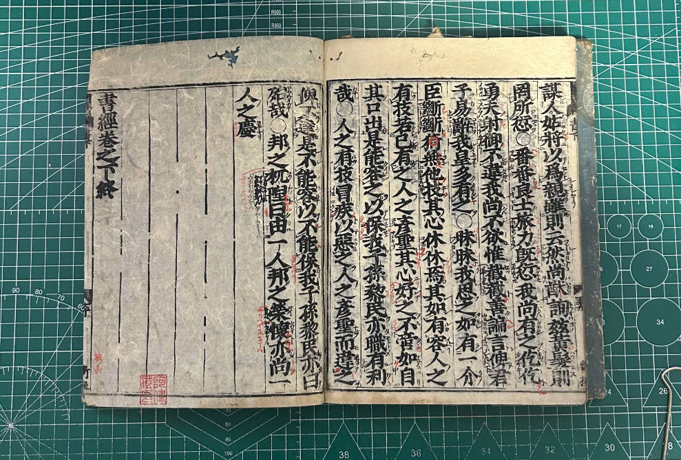 这是一本和刻本,古籍,宣纸线装。上,下两卷全。内页有红色标注,虫蚀痕迹严重,但是没有缺字。