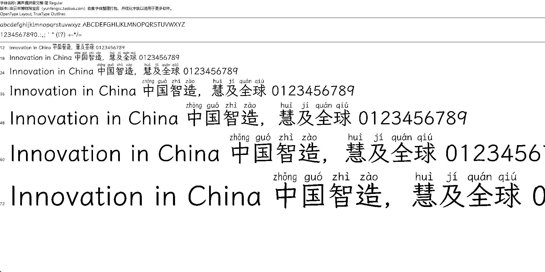 澳声通拼音文楷,带拼音;