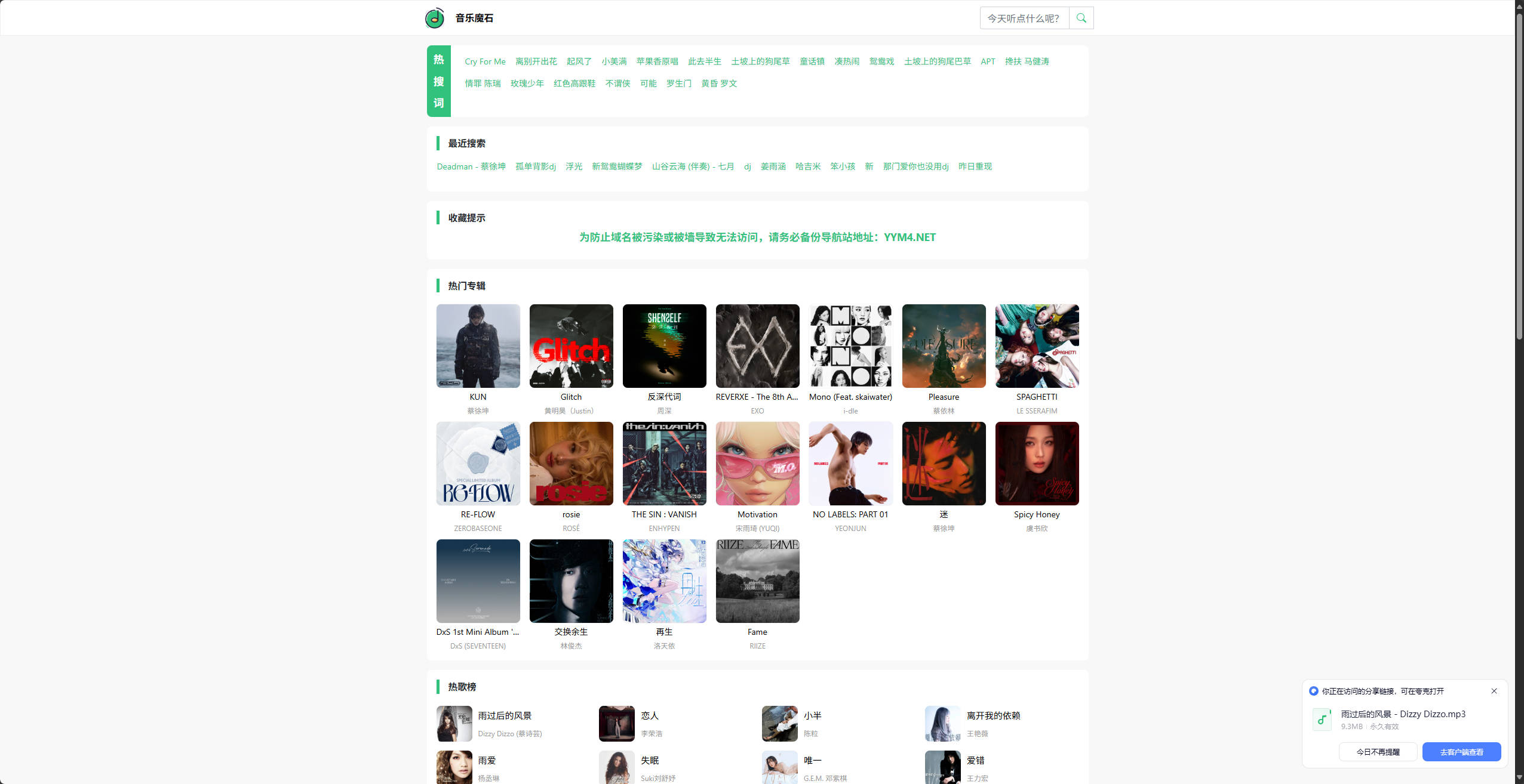 【网站】音乐魔石-无损音乐免费下载网站