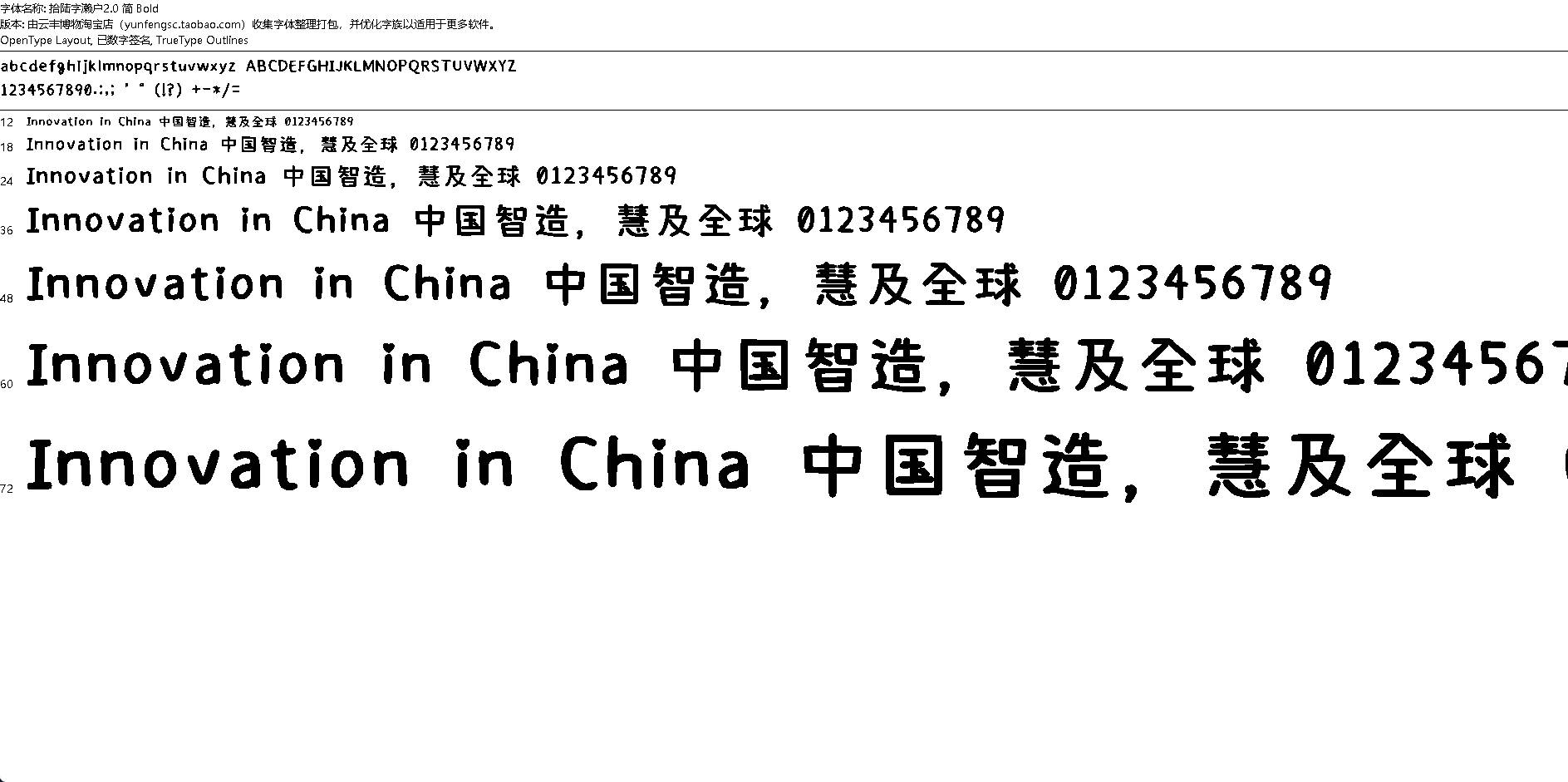 拾陆字濑户,手写体;