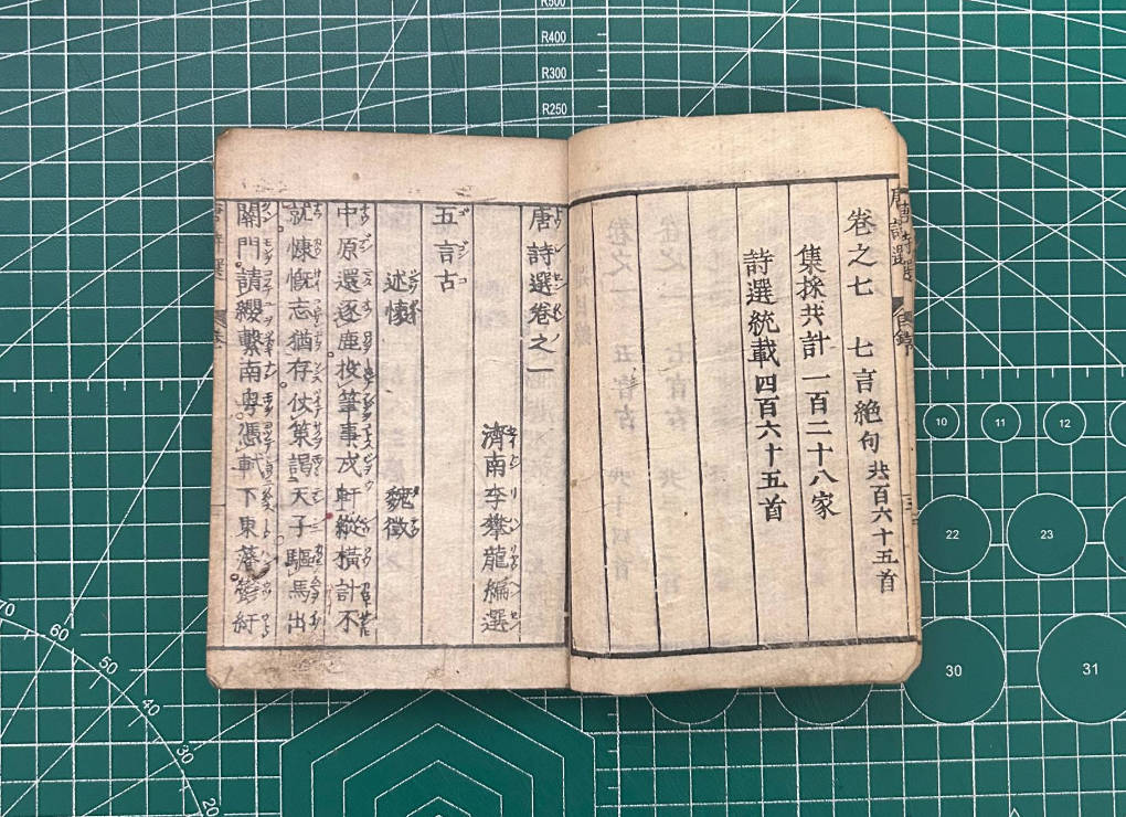 《唐诗选》是明代李攀龙编选的唐诗选本,系从其《古今诗删》中摘取唐代诗歌而成,在明万历至清初流行。明末吴逸曾作注释,调整部分诗作,形成原选与附录的结构。该选本收诗侧重初唐与盛唐,对李白《静夜思》等诗的文本流传有影响。该书虽存在真伪争议,但在日本传播广泛。