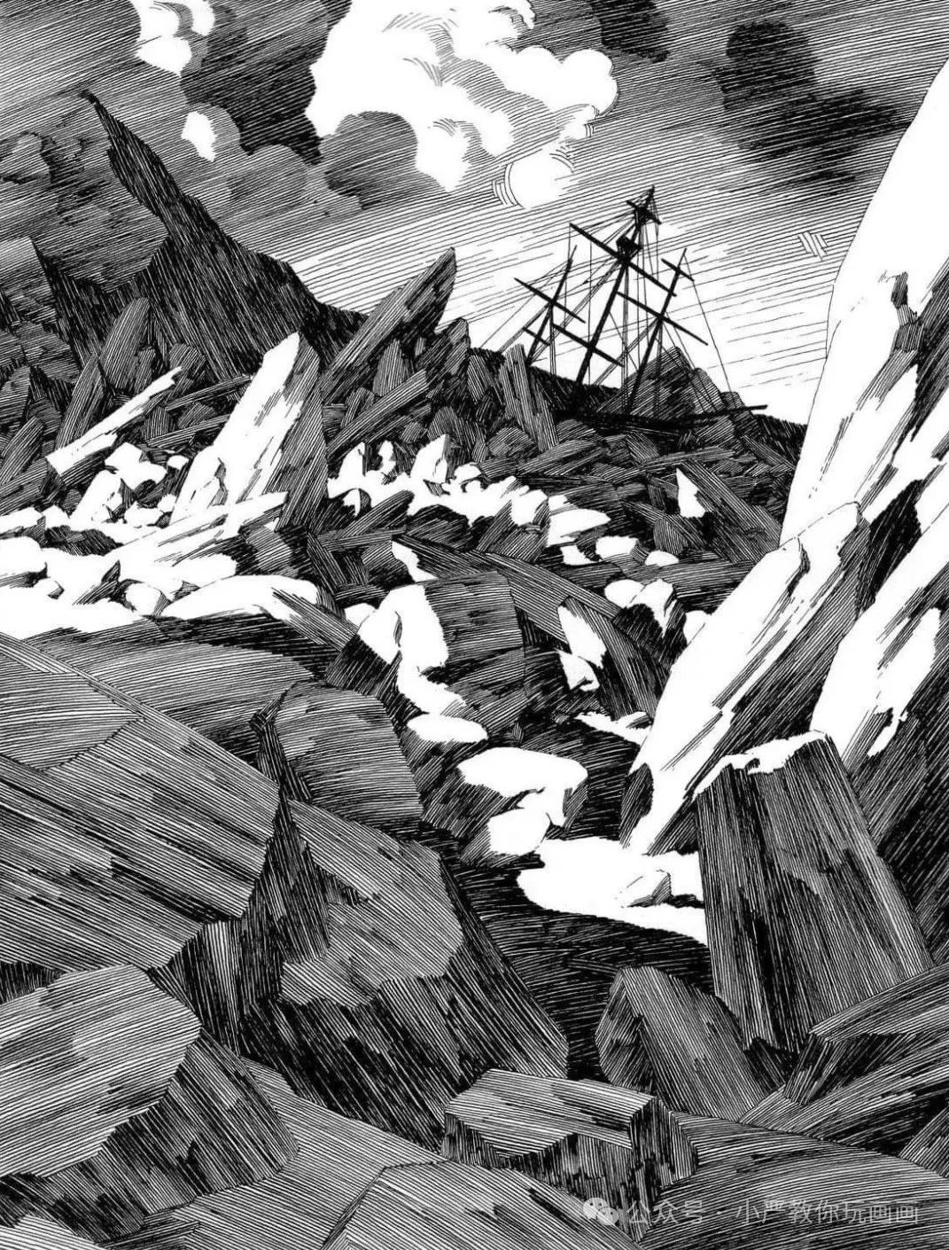 以上作品均为简单的线条因素构成的画面,无论是近看还是远看,它仍旧具有很强的视觉冲击力,当然要做到这种程度需要大量的练习。本期内容目的主要是介绍线条的运用,切勿不要过度练习而忘了本身绘画能力的提升,就当一次课外读物,了解一下即可。需要用时再回来看下即可。也希望大家能有效学习,百尺竿头。更进一步!