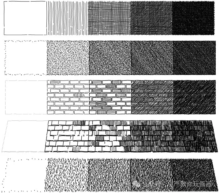 不同的线条亦可组合成不同画面效果。在以后风景速写中我们将会运用到非常多线条,熟练使用各种线条更加有利于画面的表达。
