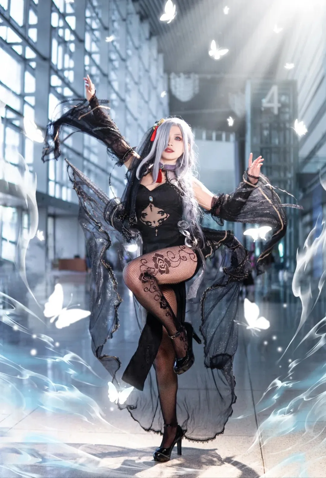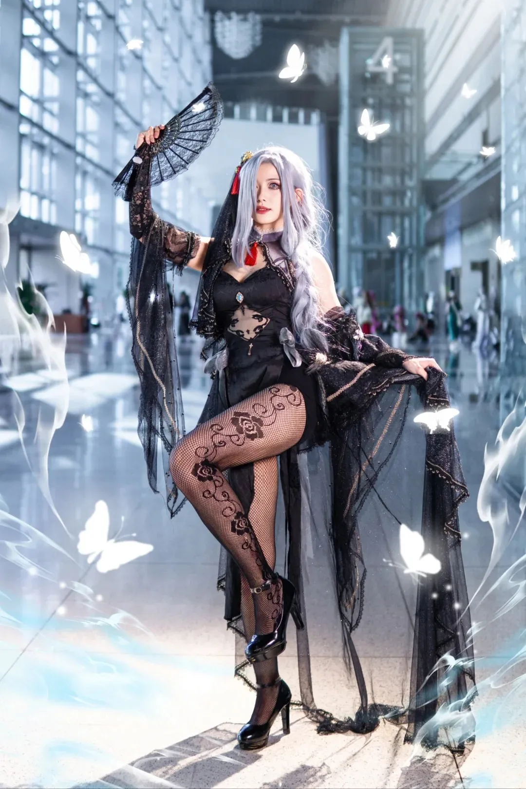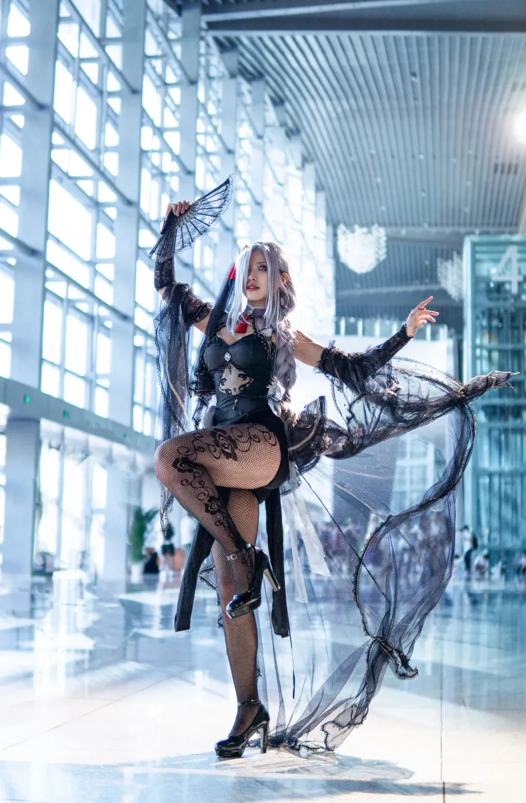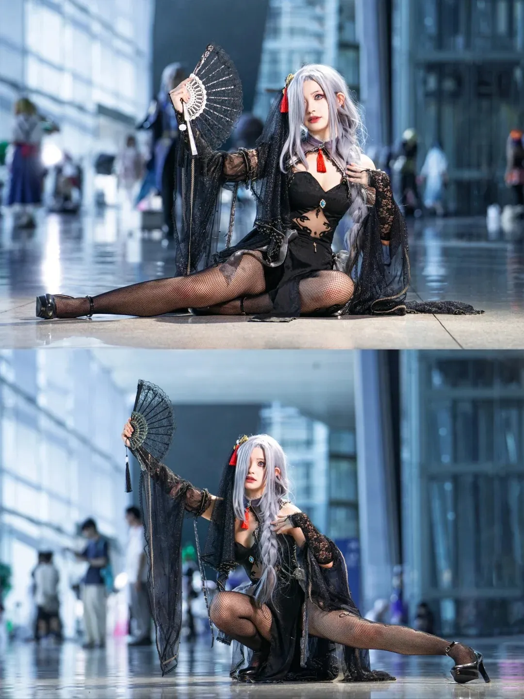 Cosplay;女孩子;长发;白发;黑丝;原神;申鹤;