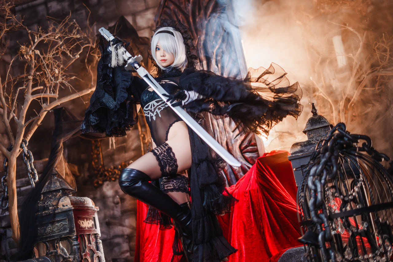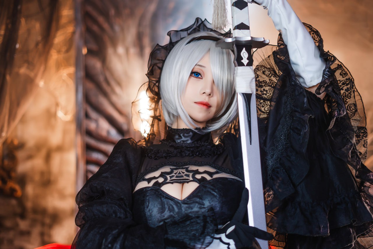 Cosplay;女孩子;白发;尼尔机械纪元;2B;日本刀;