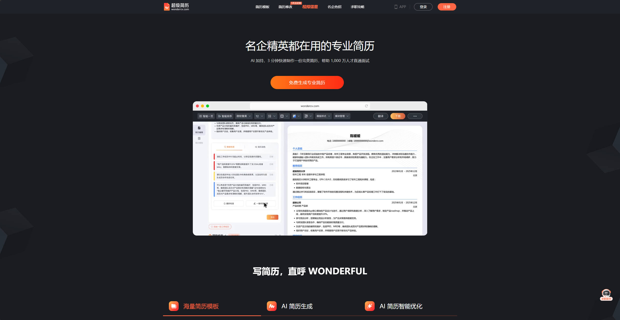 超级简历WonderCV - HR推荐简历模板,智能简历制作工具,专业中英文简历模板免费下载。