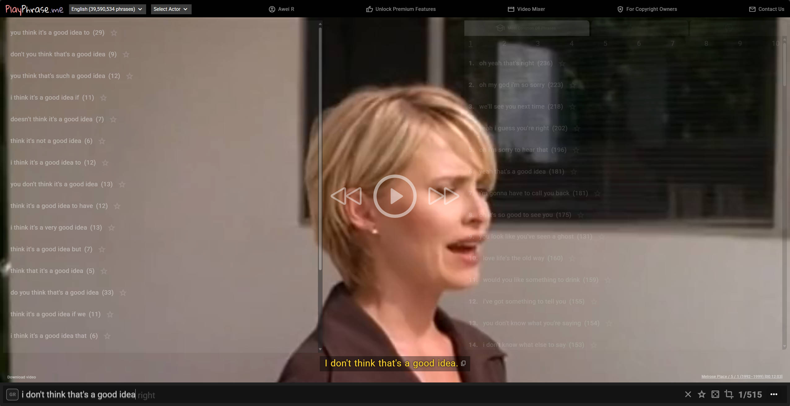 输入台词,可以找到相关的电影片段。收费。不能查找中文。
