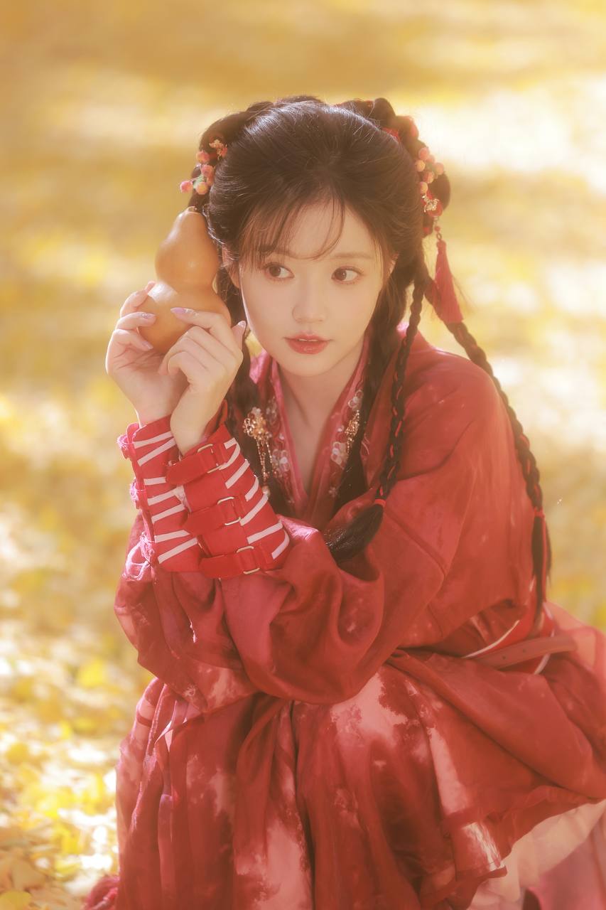 Cosplay;女孩子;长发;红色;劲装;葫芦;
