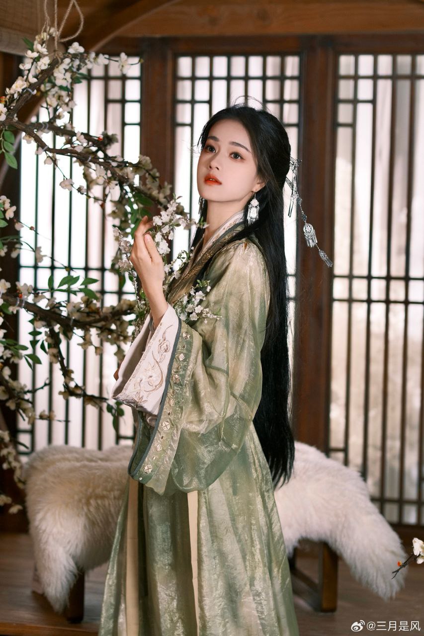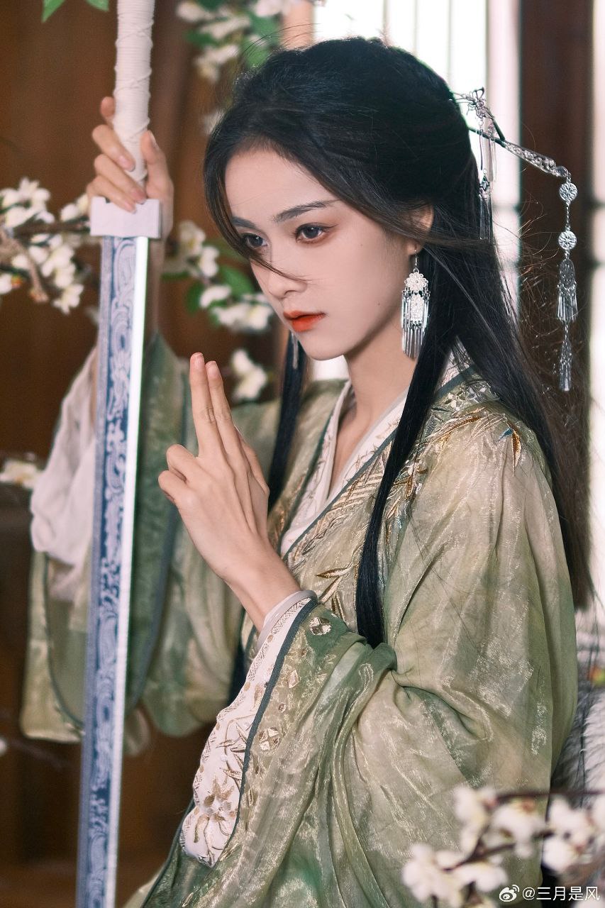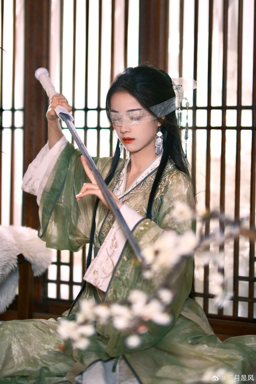 Cosplay;女孩子;长发;绿色;霓裳;剑;