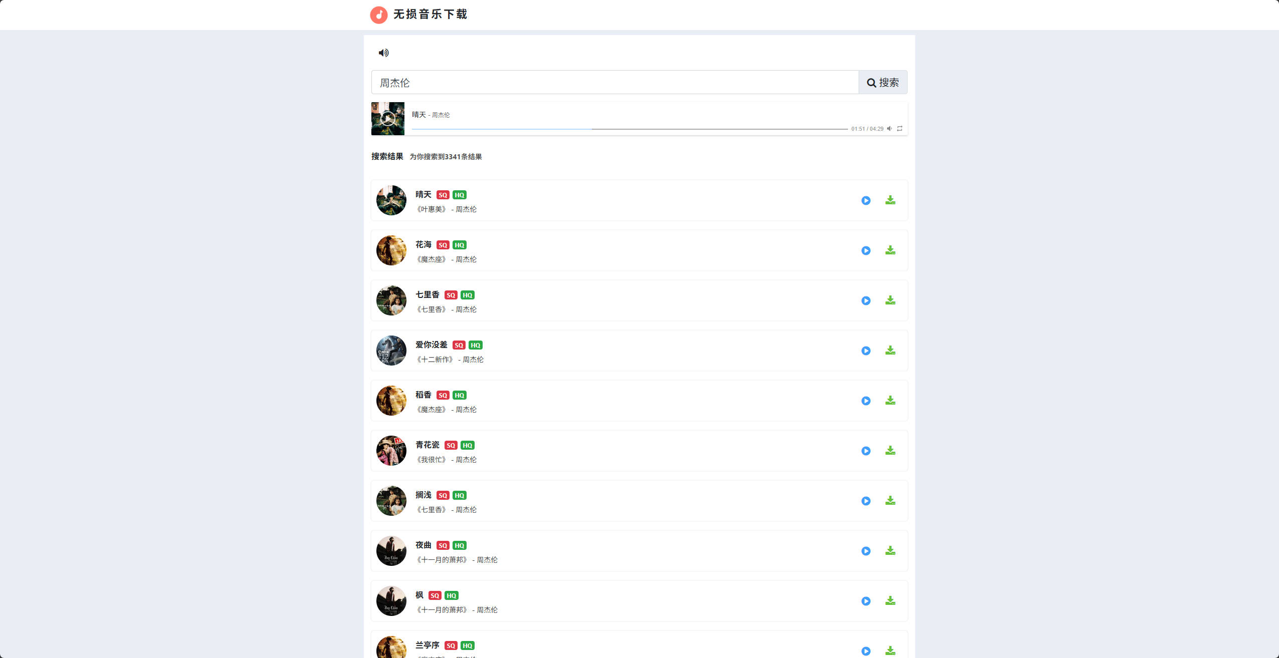无损音乐下载网,多站合一音乐搜索解决方案,可搜索试听免费下载网易云音乐、QQ音乐、酷狗音乐、酷我音乐、虾米音乐、百度音乐、一听音乐、咪咕音乐、荔枝FM、蜻蜓FM、喜马拉雅FM、全民K歌、5sing原创翻唱音乐、SoundCloud。