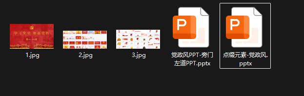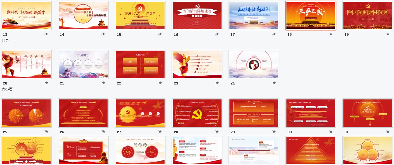 党政类PPT模板。包括封面目录内页和一些点缀元素。