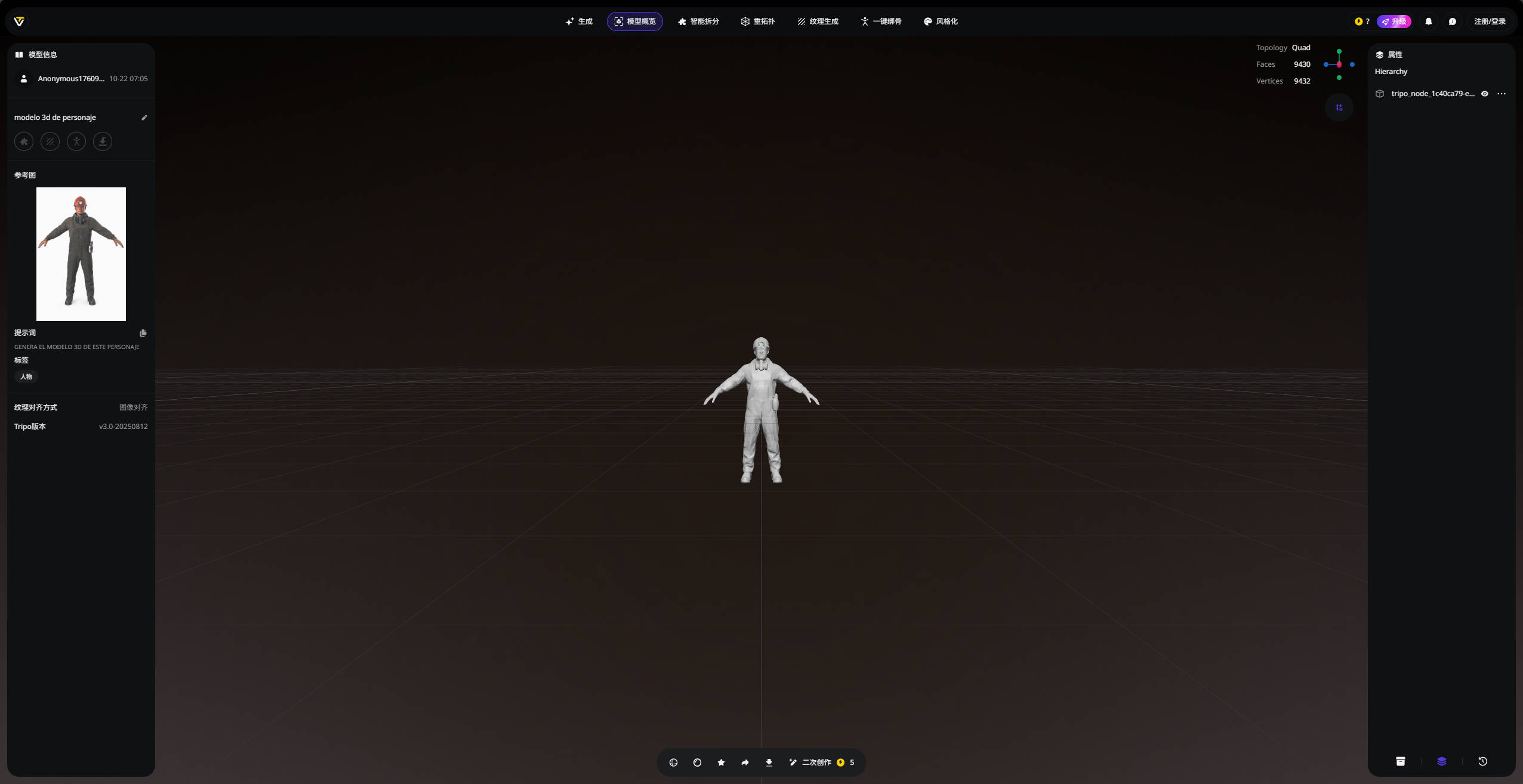 网站;实用工具;Tripo AI;3D 建模;AI 3D 模型生成器;即用型 3D 模型;文本转 3D;图像转 3D;文本到模型;图像到模型;AI 3D 生成;AI;3D 设计;数字资产;AI 3D 模型;AI 3D 生成;角色创建;角色设计;3D 角色建模;头像设计;虚拟角色;最佳 3D AI 模型生成器;